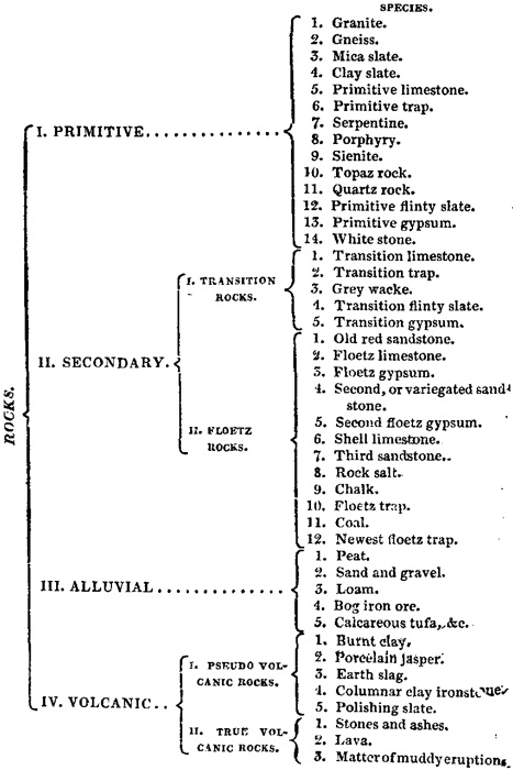 713.To complete a general view of the different productions of the mineral kingdom, it is requisite to subjoin a tabular arrangement of the various kinds of rocks.