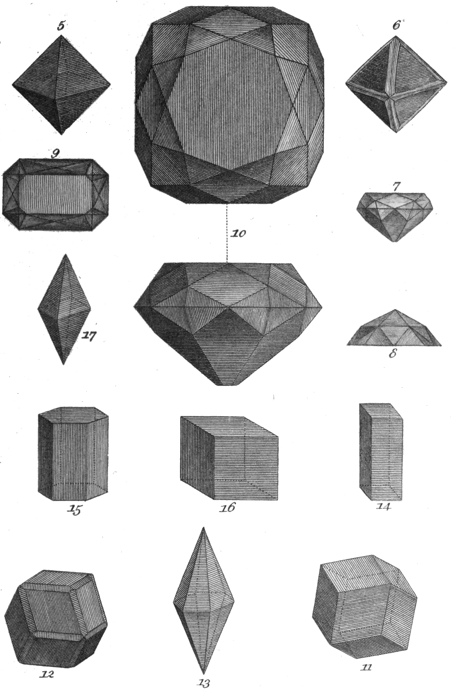 16. As a necessary introduction to the study of minerals, it is requisite to describe, in a brief manner, such 9simple substances as form their constituent parts. Few of these, it is true, are to be found in a separate, uncombined state; yet that they do exist, and that they are to be obtained from the minerals with which they are united, we have the proof of every day’s experience.
