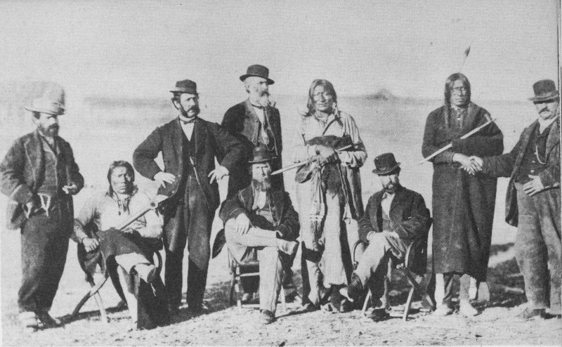 The Peace Commissioners in council with Indians at Fort Laramie in 1868. From a photograph by Alexander Gardner in the Newberry Library.