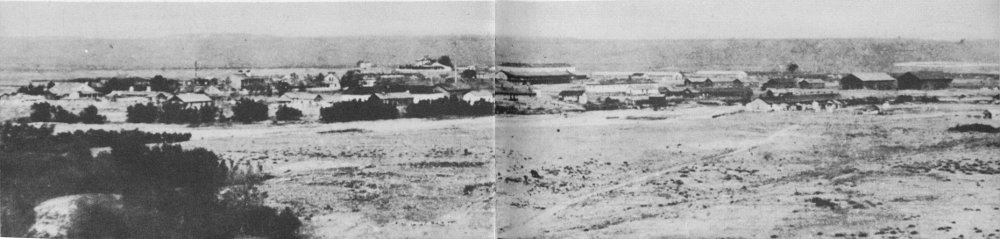 Barracks for five companies and the new guardhouse viewed across the parade grounds about 1889. Courtesy U. S. Signal Corps.