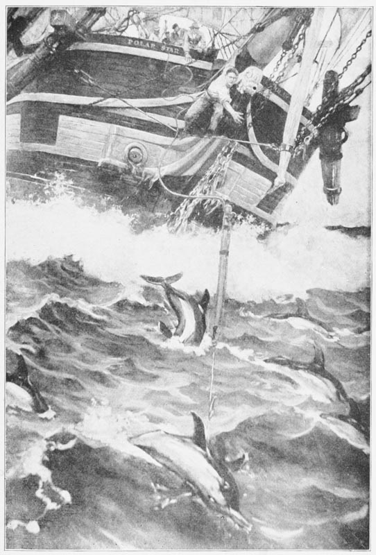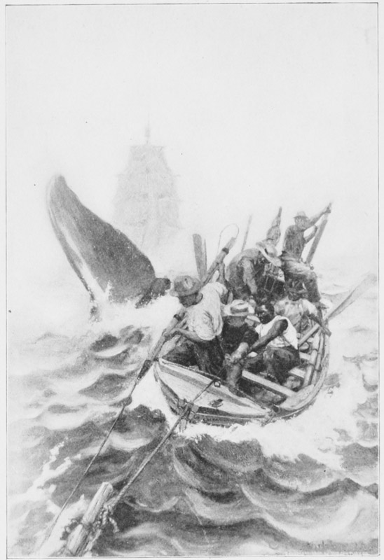 When the ship had hauled out into the stream I would sit on my favorite pile and gaze out at her and at the harbor. She usually anchored in the channel near Palmer’s Island, almost in line with Fort Phœnix on the Fairhaven side. I sat on my pile and gazed at her, looking trim and seaworthy—as she was in fact—and envied the black boys with the thin gold hoops in their ears, and dreamed dreams, as I suppose all boys do, even the most matter-of-fact of them. Those dreams of mine were to come true. Instead of the whitewashed walls of Fort Phœnix and the whitewashed lighthouse on Palmer’s Island, I saw a heaving ocean under a sunny sky, and off upon the surface of that ocean I saw feathery clouds of vapor slowly rise, like the drooping white ostrich plume on Ann McKim’s hat; and the feathery shafts of vapor drifted off and vanished, and from the masthead floated down to me the melodious cry, “Bl-o-ows!” And I roused with a start, and there was nothing before my eyes but the low whitewashed brick wall of Fort Phœnix and the whitewashed lighthouse on Palmer’s Island, and the smiling surface of the harbor, and the ship waiting there.