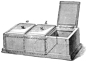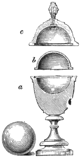 This marvellous and remarkably elegant illusion consists of a pretty case, with glass front and sides, which the performer proves to be perfectly empty by placing his wand inside, and which the audience can see through the glass front and sides, being inserted in the very back of the box. Nevertheless, on exclaiming Heigh! Presto! the performer makes a large ball appear inside, to the great astonishment of the audience. To increase the effect, the casket can be tightly corded, thus proving that the ball which is discovered within could not have been passed through any aperture. Price of casket with ball, by express, $1.50.