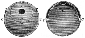 V. The Marked Florin in Oranges.—Previous to performing this trick, get two florins exactly alike, and mark them both similarly.561 Then get two oranges and cut a slit in each. Place them on the table after you have put one of the marked florins inside one of them. Then borrow from the audience a florin, and request the owner of the florin to mark it. You then ask a person in another part of the room to hold it, but giving him your marked florin instead of the borrowed one. Then you go to the table and slip into the other orange the borrowed florin. You ask your audience in which orange they would like the marked coin to be found, remembering that as you face the audience it does not matter which they say—right or left—as your right is their left, and their left your right. Whichever orange they ask for, take the one containing your marked florin. You then ask the party holding the florin if he would be sure to know it again. Then give him the orange to hold on the point of the knife; and in taking the florin from him conceal it in your hand, and say that you will cause it to pass into the orange which he holds. On cutting the orange open he, of course, finds your marked florin, which, on examination, he asserts to be the one held by him. Then say that it would have been totally indifferent which orange was selected; and give the other orange to the person who lent the florin to hold. You then take your marked florin and say that you will cause it to pass in the orange he holds in his hand; and request him to cut it open. He does so, and then perceives his own marked coin in the centre.