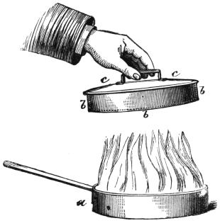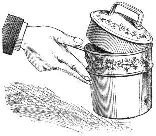 II. Indian Sand Trick.—This trick has been made famous by the Hindoos, who for many centuries contrived to retain the secret. It consists of placing ordinary sand in a basin full of water, stirring the water and taking out the sand in handfuls, perfectly dry. It need scarcely be said that without previous preparation it is impossible to effect this. Take two pounds of fine silver sand, place it in a frying-pan, and heat well over a clear fire. When the sand is thoroughly heated place a small piece of grease—the composition of a paraffin candle preferred—among the sand, stirring it well up to get it thoroughly mixed. Then let the sand get cold. You place into a basin of cold water two or three handfuls, then stir the water well. It will be found that the sand repels the water, and can be drawn out perfectly dry. It is very important that only a small portion of grease560 be used, so that when you hand round the sand for examination its presence may not be observed.