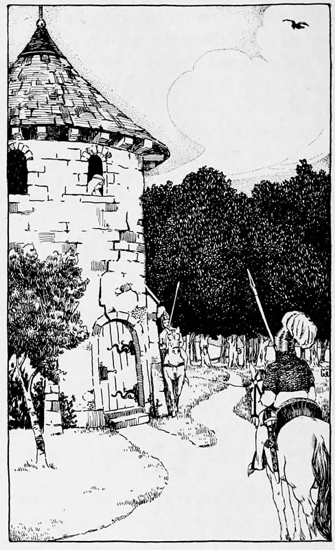 The knight heard the call and turned in the direction of the tower. Williswind uttered a cry of rapture; it was her brother. In his haste to reach home as[100] quickly as possible, he had taken this path through the forest.