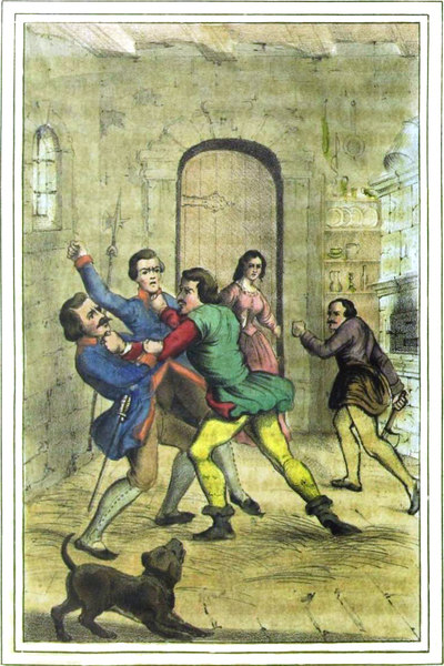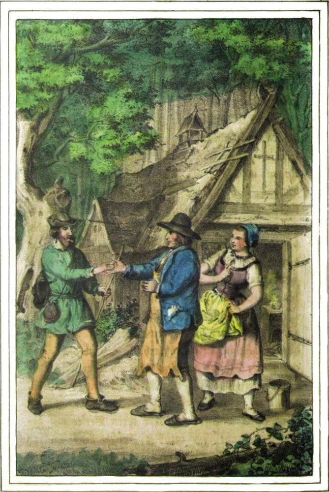 Es entstand nun darüber ein Streit, bis der Fremde, den dieses Gezänke auf die Länge der Zeit langweilte, sich verabschiedete und die Schenke verließ, um ruhig seinen Weg weiter fortzusetzen.