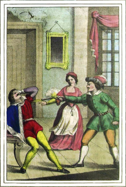 „Elender Wollüstling!“ brüllte der rasende Philipp, und, von seinem Schusse getroffen, stürzte der Graf wimmernd zur Erde.[37] —
