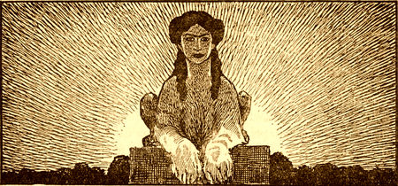 Es gibt ein altes Märchen, aus dem Sagenkreis der Melusine. Ein Berg liegt stufenweise voll greulicher Drachenhöhlen. Ritter ziehen aus, schöne tapfere George aller Art, aber sie schaffens nicht, sie werden von den Ungeheuern gefressen, das Scheusal triumphiert. Da kommt ein wahrer Prachtkerl, der einen Lindwurm um den andern erlegt bis zum obersten. Der aber frißt ihn doch noch. Und man hört, daß die Ursache weit zurück in seinem Stammbaum lag. Dort war irgendein dunkler Punkt, wenn aber der nicht erfüllt war, so stand nach unerbittlichem Gesetz geschrieben, daß auch er die Drachenburg nicht ganz erlösen konnte. Der Mensch hat alles Drachenvolk der untern Erde überwunden im Menschengeist. Aber[35] zuletzt haftet er an dieser Erde, und er haftet am Leben. Liegt auch hier der Drache, der ihn doch noch fressen muß?