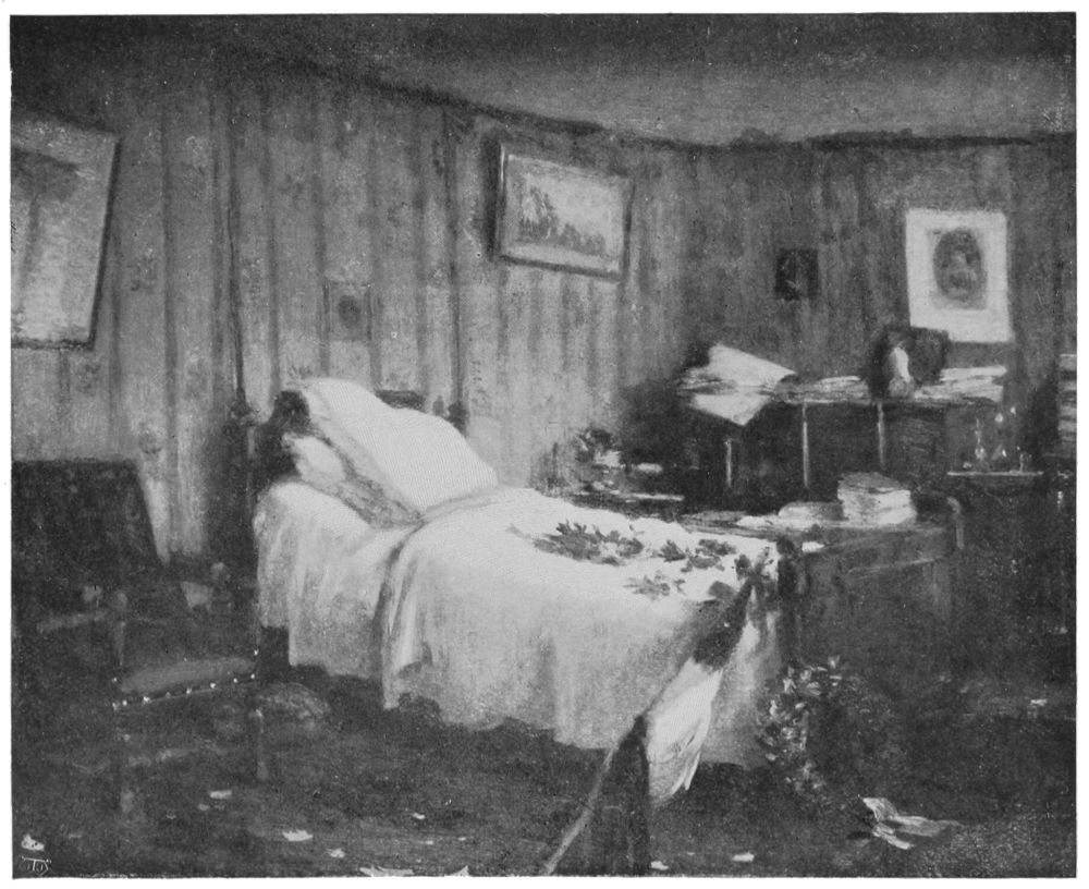 It is an ancient prayer—“Lord, may I die in my bed,” but rather an original idea to seek to pass out of life in the very bed where one was born! This, however, was Cazin’s dream. He had carefully preserved every beloved detail in the home of his childhood and youth in Samer (Pas-de-Calais); thither he planned to return and pass his last days. He longed to inhabit again his boyhood’s room; to go forth for ever surrounded by all that had welcomed him into a world he was to leave richer for his existence. Fate disposed otherwise.{34}