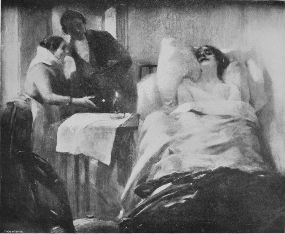 On the left, at the entrance door, are the most beautiful of the series of decorations. These are life size. One is “La Malade,” a sick girl in her bed, surrounded by the mother, the nurse and the physician.{127}