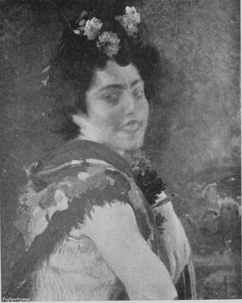 “La Femme de Biarritz”—Martignac—one of Besnard’s late paintings, is very beautiful indeed. The model is a woman of warm, voluptuous type, revealing the characteristics of the Basque. This picture was painted when Besnard was in Biarritz, where he had gone for the health of one of his children.