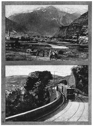 We have climbed up and around and 157 over the Alps, following the gorge of the upper Rhone. For nearly a day we threaded the mountains, their tops veiled by the clouds. Scarcely ever were we out of sight of a leaping cascade or a picturesque village perched high above, or far below us, except when rushing in and out of the countless short tunnels. Of only less interest was the crossing of the Apennines from Turin to Genoa.