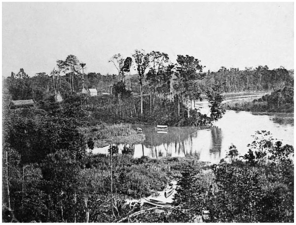 At about four in the afternoon I decided to camp, in order to get my sick under cover before the evening rains came on; I expecting the Governor’s party to arrive within a few minutes. An hour went by: the Papangi carriers came in, and reported that Walsh, the Governor, and Manning had dropped behind to gather orchids and land shells. More time elapsed, and I began to get anxious and sent back Sergeant Barigi and ten men to look for them, also Elliott’s corporal, who knew the country well. The night was coming on fast when the corporal returned to say that they had found the Governor and the rest of the party, sitting between the Kumusi and another big river, just above their319 confluence. They should have crossed the former by a native bridge three miles further back; and the Governor, being tired, was in an awful rage with Walsh and had sent to tell me to get him over.