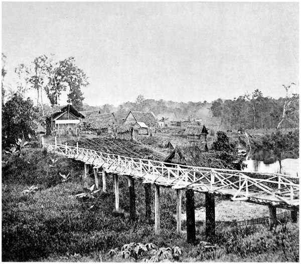 “The river had been spanned here by a native suspension bridge of vines, which had been cut, but by next morning, 19th July, the police and carriers had constructed rafts, and in a comparatively318 short space of time the whole party had safely crossed to the other side. A few hours’ walk and Papaki Station was reached. There I was received by the A.R.M., Mr. Walsh, and by Mr. Elliott, A.R.M. at Bogi.