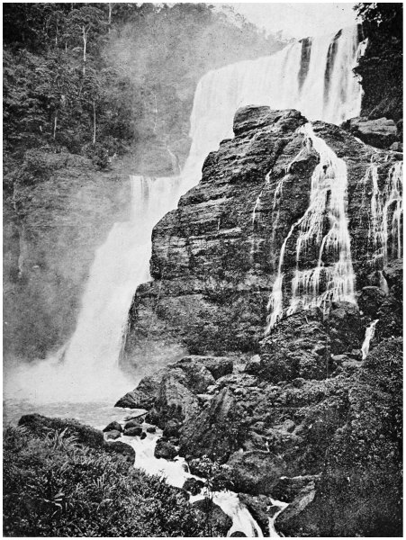 At last Sergeant Barigi discovered a faint track leading up a narrow side gorge; so, taking half a dozen police with me, I followed it for about a mile, the bottom gradually rising the whole time, until it also terminated in a waterfall about twenty feet in height. Resting against the side of the waterfall was a smooth pole, up which the local natives apparently climbed. After many efforts Corporal Bia and four police succeeded in climbing up it, and stationed themselves as a guard at the top, while I sent word to the Governor to come on. When more police arrived, they made a ladder of poles and vines, and by its help we emerged from the “abode of devils” on to a steep hillside, up which we climbed with considerable difficulty in the wake of the scouts, who were now reinforced by Corporal Bia and his four men.