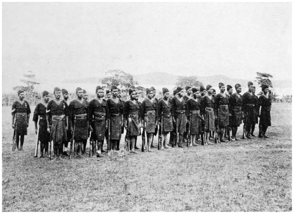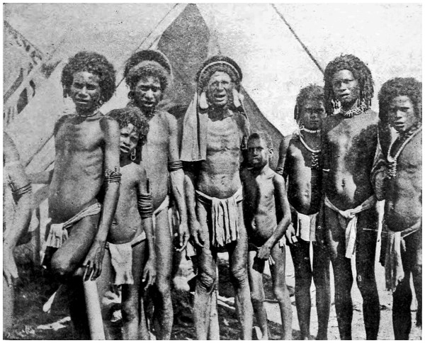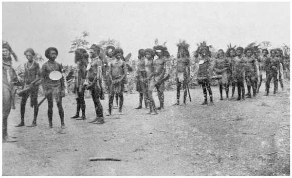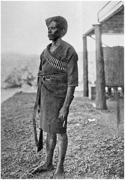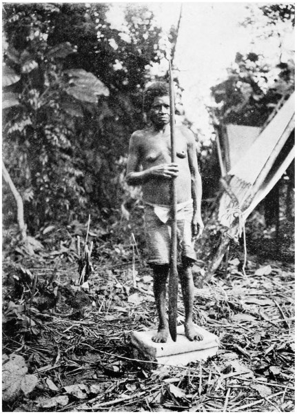 “The devils” turned out to be a small party of mountaineers, who had discovered and suddenly attacked my scouts. No damage was done by them, other than a spear hole through Private Mukawa’s haversack. Several of the mountaineers were wounded and two captured; they had been demoralized and terrified by the—to them—appalling noise and effect of the rifle308 fire. One of the captured men was a leper. We could not make them understand a word we said; their language was quite strange to the Baruga village constable; but by signs we endeavoured to explain to them that we were not enemies, and we gave them a few small presents, and sent them off to rejoin their friends.