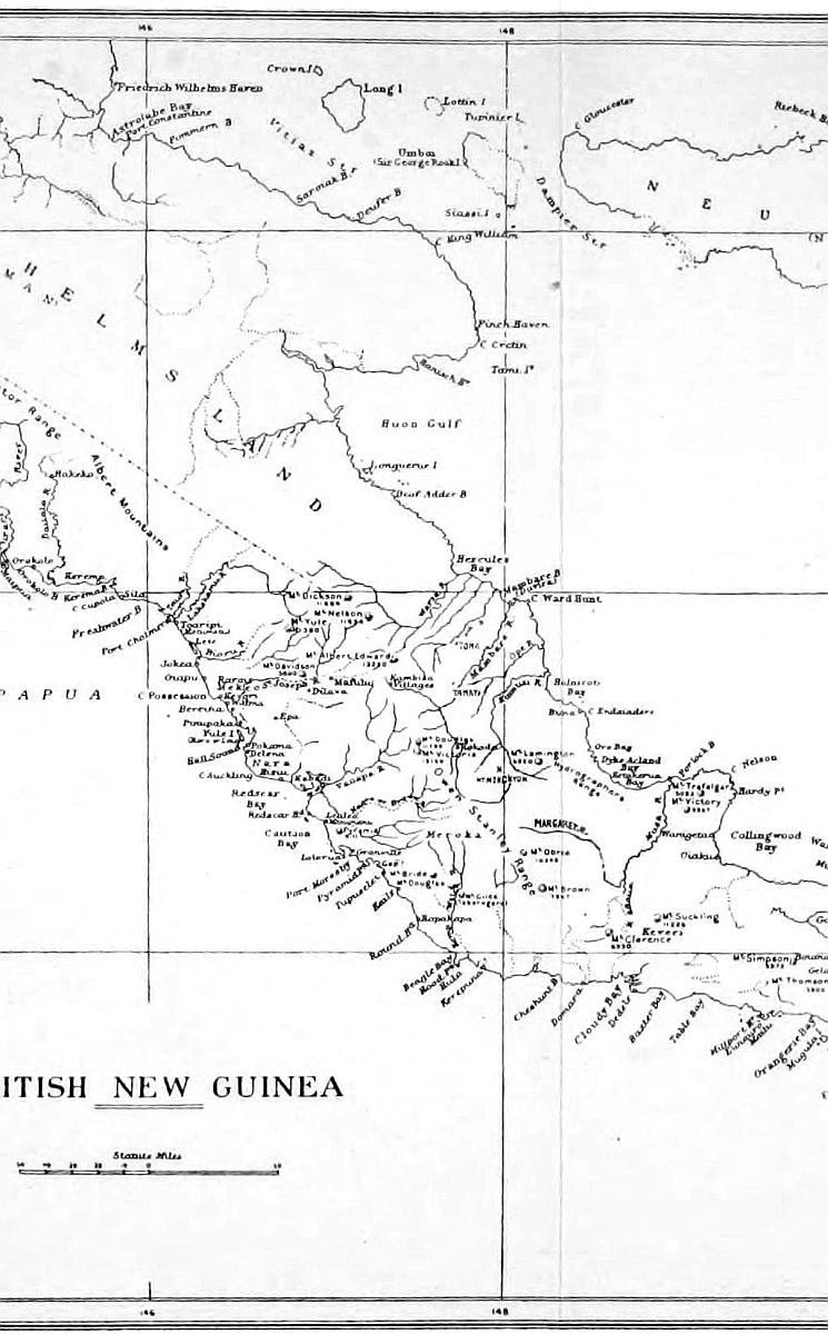 I have abstained from putting into the mouths of natives the ridiculous jargon or “pidgin English” in which they are popularly supposed to converse. The old style of New Guinea officer spoke Motuan to his men, and I have, where required, merely given a free translation from that language into English. Inviii recent books about New Guinea, written by men of whom I never heard whilst there, I have noticed sentences in pidgin English, supposed to have been spoken by natives, which I would defy any European or native in New Guinea, in my time, either to make sense of or interpret.