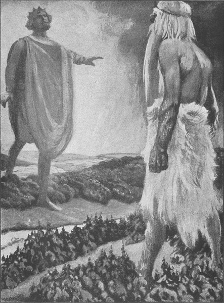 „Soso, also das ist deine Absicht!“ sagte er. „Wenn du’s nur fertig bringst! Ich fürchte, ich bin ein zu großer Happen für dich. Du glaubst wohl, ich bin dasselbe wie so ein bißchen Wiese oder Feld, worüber man im Nu hinwegspazieren kann. Aber ich bin der Mächtigste und Vornehmste in der ganzen Gegend, mußt du wissen. Ich will dir einmal mein Liedlein vorsingen, dann kommst du vielleicht auf andere Gedanken.“