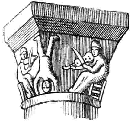 De nos jours, où la caricature est exclusivement cantonnée dans les petits journaux, je n'ai pas encore rencontré d'architecte appelé à bâtir une église moderne qui ornementât la façade et les chapiteaux de magots et de figures bouffonnes.