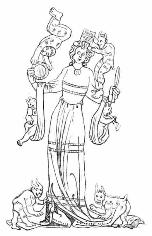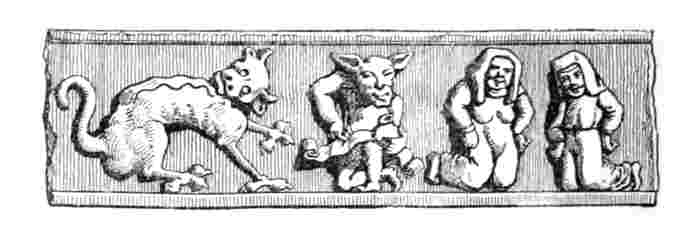 A partir du dixième siècle, un certain développement se fit sentir, marchant vers la réalité qui jusque-là n'avait paru qu'une lueur lointaine. C'est alors qu'il est intéressant de lire la bizarre écriture que traçait le peuple sur la pierre. On démêle les pensées confuses qui emplissaient son esprit: terreur, sentiment égalitaire, raillerie qu'exprime une trilogie qui, du moyen âge, va jusqu'à la Renaissance:[Pg 12] le Diable, la Danse des Morts, Renart.