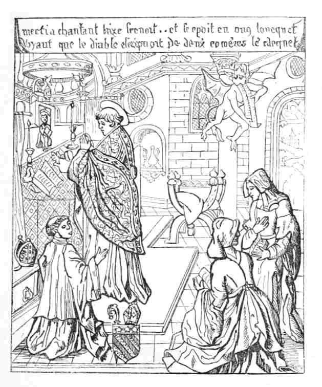 Le christianisme ayant fait invasion dans l'art romain, l'art romain traverse les Alpes pour lancer sa dernière note au milieu des concerts chrétiens. Comme dans le culte idolâtrique, des monstres et des animaux fantastiques s'accrochent aux chapiteaux des églises, bâtissent leur nid dans les modillons du portail et troublent la tranquillité d'un symbolisme nouveau que le christianisme avait tenté d'inaugurer dans les catacombes. Aussi, jusqu'au seizième siècle, voit-on en France les saintes femmes marcher en compagnie des sibylles, les chérubins des sirènes, les apôtres des monstres païens, et ce n'est pas seulement sous les portails des églises que ces assemblages hybrides se remarquent: les miniaturistes, moines pour la plupart, se sont plu à reproduire avec leurs pinceaux, dans les livres d'Heures à l'usage des princes et des dignitaires de l'Église, ces alliances profanes et sacrées.
