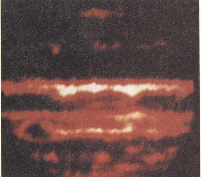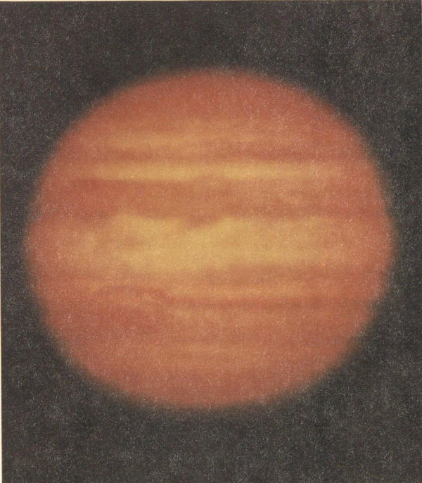 In the late 1960s a Lear-Jet airplane was equipped with a telescope and made available by NASA to astronomers to carry out long-wave infrared observations from above 99 percent of the terrestrial water vapor. In 1969 Frank Low of the University of Arizona and his colleagues used this system to make a remarkable discovery: Jupiter was radiating more heat than it received from the Sun! Repeated observations demonstrated that between two and three times as much energy emanated from the planet as was absorbed. Thus Jupiter must have an internal heat source; in effect, it shines by its own power as well as by reflected sunlight. Theoretical studies suggest that the heat is primordial, the remnant of an incandescent proto-Jupiter that formed four and one-half billion years ago.