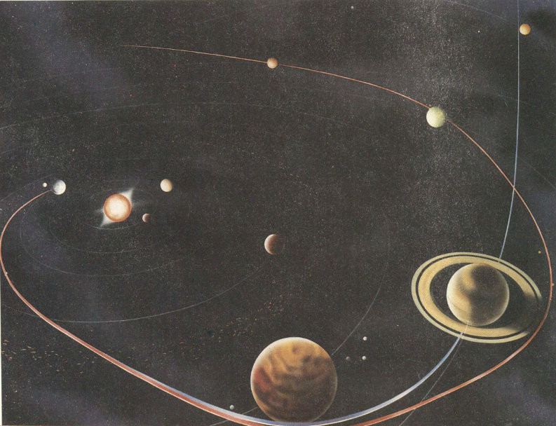 In the late 1960s celestial mechanicians—scientists who study the motions of planets and spacecraft—began to solve problems posed by the immensity of the outer solar system. If a spacecraft is aimed to fly close to a planet in just the right way, it can be accelerated by the gravity of the planet to higher speeds than could ever be obtained by direct launch from Earth. If a second, more distant planet is in the correct alignment, the gravity boost given by the first encounter can speed the craft on to the second. Jupiter, with its huge size and strong gravitational pull, could be used as the fulcrum for a series of missions to Saturn, Uranus, Neptune, and even distant Pluto. In addition, the early 1980s would offer an exceptional opportunity, one repeated only about once every two centuries. At that time, all four giant planets would be in approximate alignment, so that gravity-assist maneuvers could be done sequentially. A single spacecraft, after being boosted from Jupiter to Saturn, could use the acceleration of Saturn to continue to Uranus, and in turn could be accelerated all the way out to Neptune. Such an ambitious, multiplanet mission was named the Grand Tour.