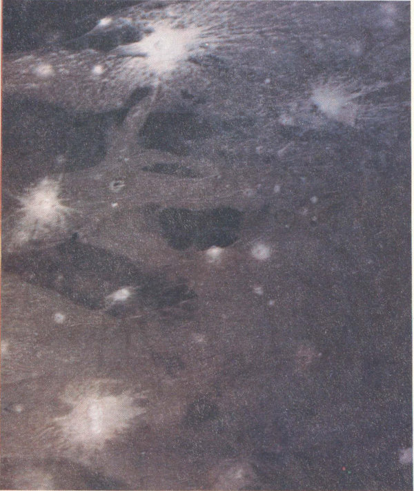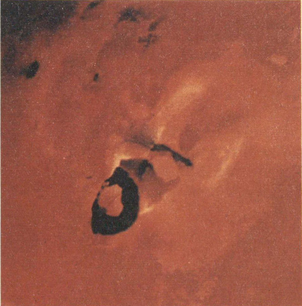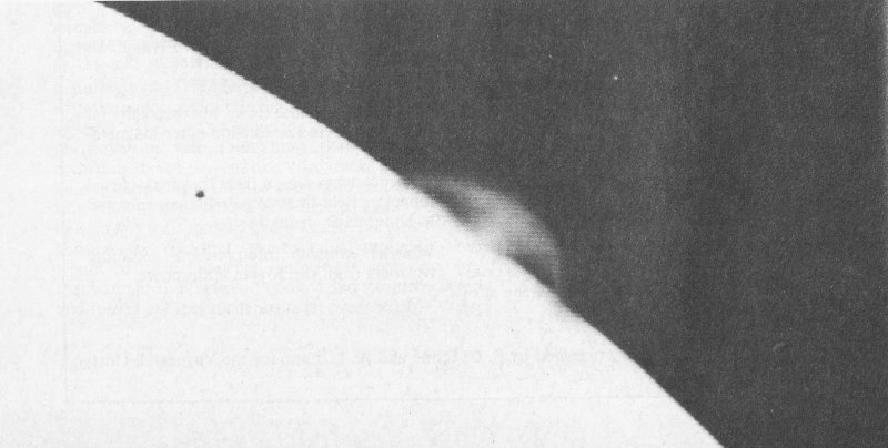 In 1973 the attention of astronomers was dramatically drawn to Io when Robert Brown 9 of Harvard University detected the faint yellow glow of sodium from the region of space surrounding it. It seemed that this satellite had an atmosphere, composed of the metal sodium! Continued observations showed, however, that this was not an atmosphere in the usual sense of the word. The gas atoms were not bound gravitationally to Io, but continuously escaped from it to form a gigantic cloud enveloping the orbit of the satellite. Fraser Fanale and Dennis Matson of the Caltech Jet Propulsion Laboratory suggested that bombardment of Io by high-energy particles from the Jovian Van Allen belts was knocking off atoms of sodium by a process called sputtering, releasing these atoms and allowing them to expand outward to form the observed sodium cloud. No one anticipated then that powerful volcanic eruptions on Io might also be contributing to this remarkable gas cloud.