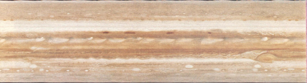 During the nineteenth century, observers using increasingly sophisticated telescopes were 3 able to see more complex detail in the band structure, with wisps, streaks, and festoons that varied in intensity and color from year to year. Furthermore, observations revealed the remarkable fact that not all parts of the planet rotate with the same period; near the equator the apparent length of a Jovian day is several minutes shorter than the average day at higher latitudes. It is thus apparent that Jupiter’s surface is not solid, and astronomers came to realize that they were looking at a turbulent kaleidoscope of shifting clouds.