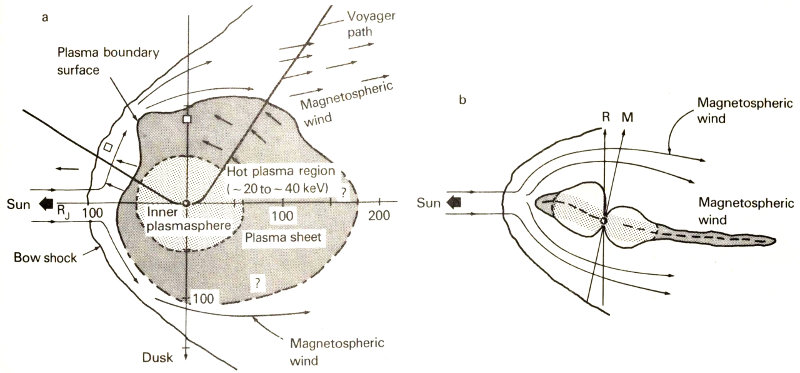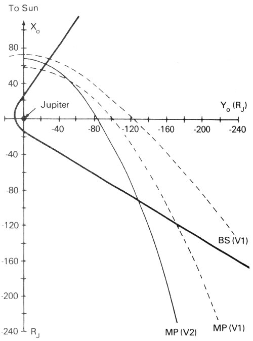 Many of the advances expected from Galileo in magnetospheric studies result from the Orbiter’s ability to explore many parts of the environment of Jupiter. The Pioneer and Voyager spacecraft made single cuts through the magnetosphere, and often it was difficult to distinguish temporal from spatial effects. Galileo will repeatedly swing around Jupiter, sampling conditions at many distances from the planet over a time span of two years or more. In addition, it is planned to adjust the orbit of Galileo to swing out into the magnetotail, the turbulent region of the magnetosphere that stretches “downwind” from Jupiter for hundreds of Jupiter radii. No flybys can reach the magnetotail; an orbiting spacecraft is required.