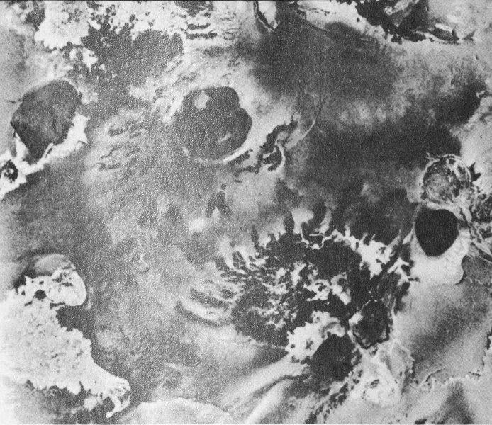 These blue filter photographs of Jupiter were taken at Mauna Kea Observatory, Hawaii. They show changes on Jupiter’s surface between 1973 and 1978, with the dates of the observations.