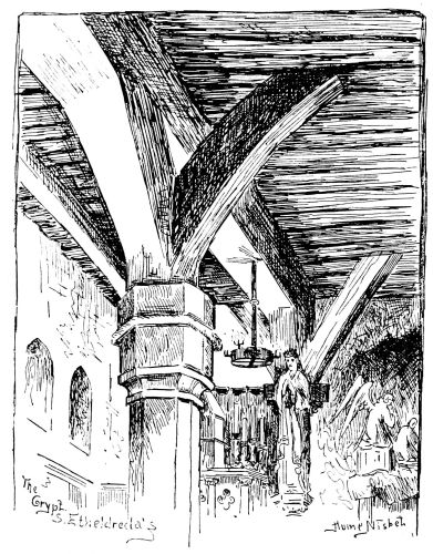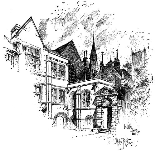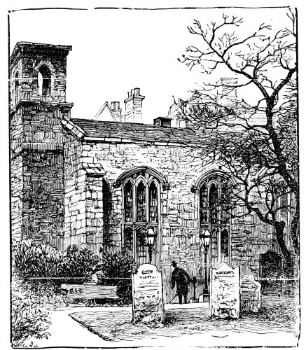 Indeed, few can conceive how many interesting streets, houses, corners, churches, and general “surprises” are to be found by those who know where to look for them. There are people who have been brought up, “man and boy,” as it is called, in London, and lived there all their life long, and who think it is little more than a repetition of the Strand and Fleet Street, and that the City is all like Lombard Street. What London abounds in is the picturesque and the poetical: there is really an abundance of charming “bits,” of artistic buildings, and of relics as noteworthy as any in a foreign town. Some of them we pass every day, but familiarity obscures their merit. Others, too, we pass every day, but they are hid behind screens and walls, or locked in behind old rusty gates. Often thinking of these ignored treasures, I determined to explore for myself, and see if I could do something in a humble way to introduce to better notice this “Picturesque London,” or the picturesqueness of London. Prompted by this sympathetic impulse, I have for years made regular, diligent “travels in London” as an explorer, and have been astonished at all I saw. It was true, no doubt, that many of these things were described in the official guide-books, but after the appraising, registering fashion of such works. What one has looked for was some one with sympathy to point out the merits and beauties. I pursued my new calling with a growing relish, often directed to inspect curiosities by a friendly counsellor, more often stumbling on them by accident. In time it was amazing what a number of old houses, old doorways, old churches, old corners, I was thus introduced to, what unsuspected treasures were laid open, and above all what a new fund of entertainment was provided for a simple street promenader.