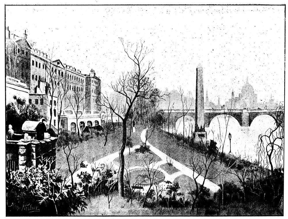 “About this time Sir F. Trench, who moved in the most fashionable circles, and was a great amateur in architecture and fine arts, was seized and enraptured with the idea of constructing quays along the banks of the Thames between Whitehall and Blackfriars Bridge, and converting the space so recovered from the shore of the Thames into a handsome carriage-drive and promenade ornamented with gardens and fountains. He applied to the late Mr. Philip Wyatt and myself to assist him in preparing the designs and in obtaining an Act of Parliament to carry it into effect. Trench said he had no doubt that sufficient money would be obtained. He accordingly, with his great influence and indefatigable activity, formed a committee of the highest class; neither were the ladies excluded; amongst others, the beautiful Duchess of Rutland took the greatest interest in the undertaking, and at the first meeting, which took place at Her Grace’s house, she was unanimously voted to the chair, and conducted everything in the most business-like manner. Lord Palmerston, then Secretary for War, took a leading part, and it is singular that many years later his Lordship, then Premier, should have proposed a similar measure, and the continuation of the coal duties for carrying it into effect, which was adopted; but when we proposed the undertaking and the mode of raising the funds, notwithstanding our powerful committee, the idea was considered chimerical. For this and other reasons the project fell to the ground.”