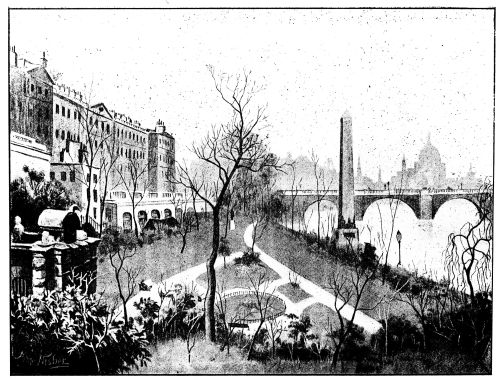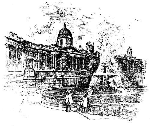 The group of buildings—the Abbey, Westminster Hall, the Houses of Parliament, the bridge beyond, the Westminster School—might be set off with prodigious effect were there one of real artistic instincts to undertake the task. Nothing, for instance, can be meaner or more ineffective than Palace Square with its statues. It is obvious that this should be treated as a place, with an imposing and attractive object as its centre; instead of which we find it divided in two by a broad walk, and the whole effect is frittered away. There is something grotesque in the statues ranged round dos{3} à dos, huddled together with a commercial view to convenience. A single statue, it may be said, needs an area to itself to have proper effect; as we may see in the Place Verte at Antwerp, where that of Rubens is sufficient to give point to the whole area.