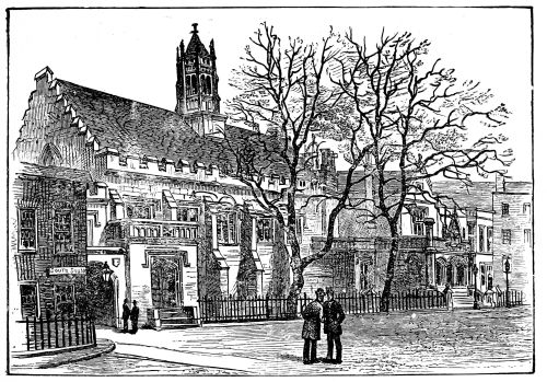 The performance of the Westminster Play, which takes place about a week before Christmas, furnishes the Londoner with an opportunity for dreaming himself away into old University or Cathedral life. Once within Dean’s Yard a very pleasing delusion steals over him; and so appropriate are the calm associations of the place that he will fancy himself hundreds of miles away in some scholastic retirement, instead of being close to the rattle of streets, of passing omnibuses and cabs and the busy hurly-burly of Westminster. The pleasant old custom of the Westminster Play still flourishes in all its vitality, and should be cherished as one of those survivals which usefully keep green the few romantic associations that are known to the capital.