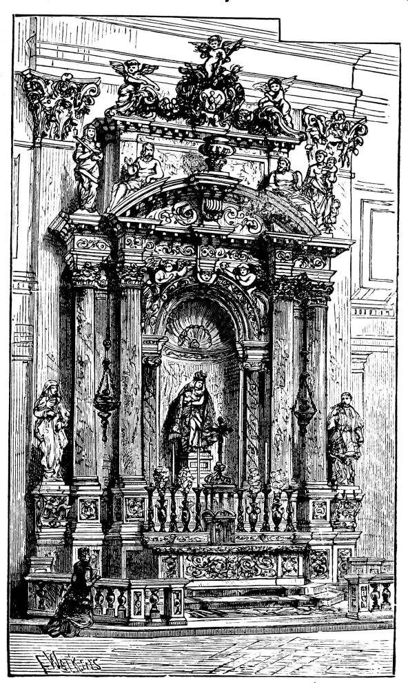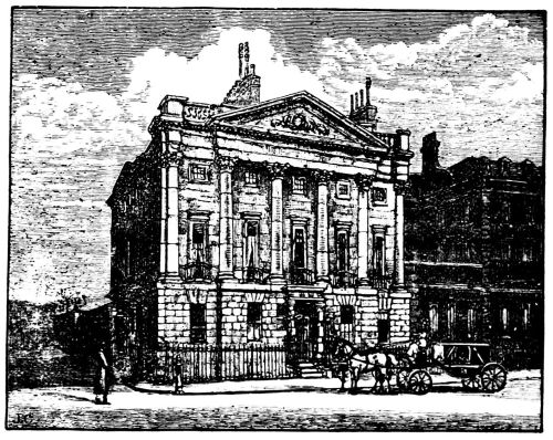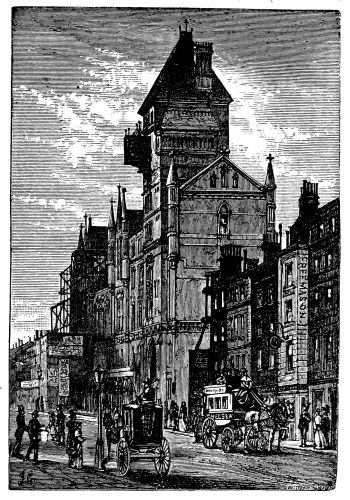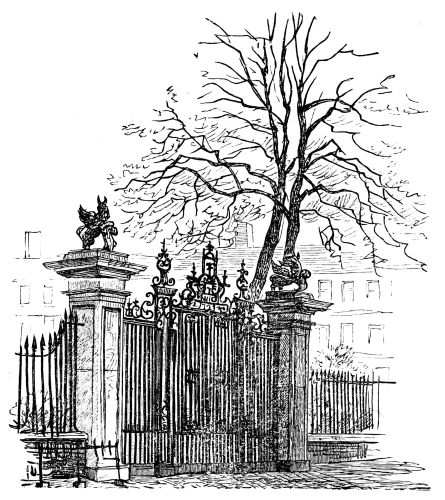 The mutations in the aspect of London are taking place with an almost alarming rapidity, so that it becomes difficult even to note them. Hardly a week passes without some old street or mansion being menaced, and marked for destruction. Of a morning we see the new and significant “hoarding” set up: in a week or two we pass again, and the “housebreakers,” as they are called, are hard at work with their pickaxes, shovelling down the old Queen Anne bricks in showers of dust. From year’s end to year’s end this goes on. The hungry eyes of the speculator, or of the thriving man of business, are often fixed upon the old Wren churches, which, in his view, so idly cumber space that might be covered with useful warehouses at enormous rents. It is sad to think that eventually it will be found impossible to resist this never-relaxing pressure, and that within a few years the clearing away of these venerable memorials will have set in. The recent clamour about St. Mary’s in the Strand is truly significant, the spoilers knowing well that if they can insert their wedge or pickaxe here, a happy beginning will have been made. These old buildings have few authorized friends or guardians beyond the amiable amateur.{xi}