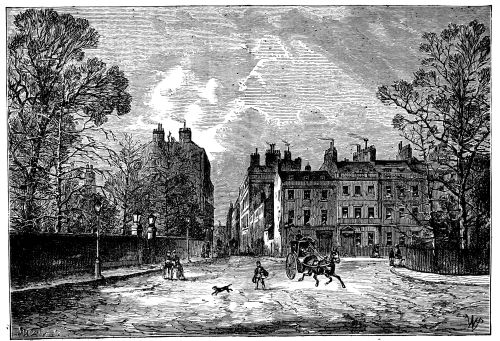 One solitary altar-tomb, carefully railed round, will be noted in this large inclosure, and we may speculate as to the reasons for this toleration, where all the rest have been swept away. The inscription is almost illegible; but it is the memorial of a certain wealthy Mr. Davies. He was the owner of all the estate where are now Grosvenor Square and the adjoining streets; from him this enormous property passed to the Grosvenor family, and Davies Street was so named in his honour. No doubt it was owing to this august connection that his tomb was allowed to remain. But his heritors might have the inscription re-cut.{2}
