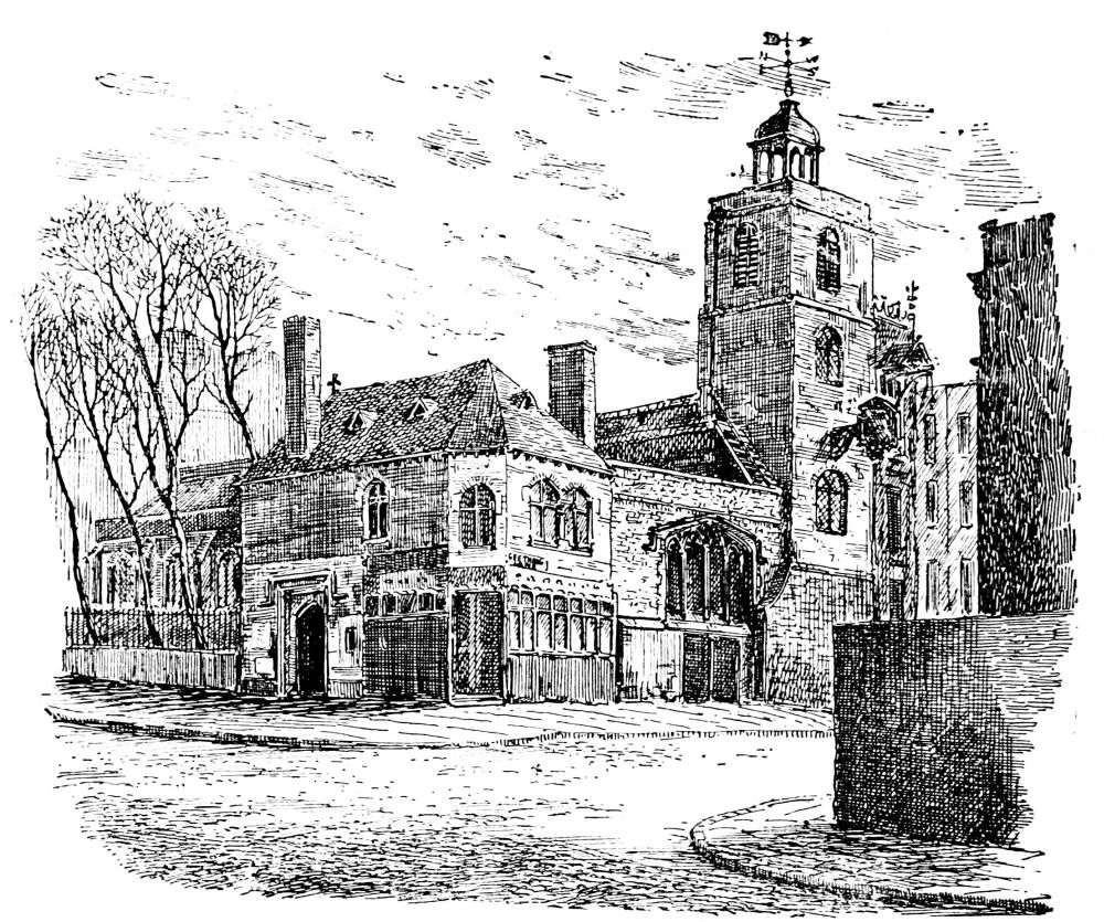 Another monument is that of Mrs. Barnett, who died in 1674, leaving £40 yearly for poor widows. A large oatmeal pudding is, or used to be, given at the “Feast,” to commemorate that this “worthy lady” sold oatmeal cakes at the church doors. Skelton, the poet, is interred here: also Thomas Churchyard, Hollar, the famous engraver, and Colonel Blood of regalia memory. There can be read here the entry of Milton’s marriage with Mrs. Catherine Woodcocke, and of Edmund Waller to Ann Bankes. There is also recorded the baptism of Thomas Betterton, the actor, in 1635. Titus Oates, Jeffreys, and Bishop Burnet’s children were baptized here. These are interesting associations.
