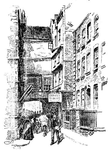 “London,” as a writer in The Builder says, “is still, in spite of all pullings down, and removals of the so-called worn-out and out of date buildings, full every here and there of quaint spots, and bits of architecture, and even of poetic remembrances in dreary nooks and corners. Many of the antique streets are yet in existence, as far as the plans of them go; and the irregularity of house pulling down and improvement necessitates differences in the size and height of the houses, which make up the crooked street, and leave the idea of it, as it was, almost intact.”