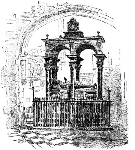 The old tablets with which the walls are incrusted have an interest from the originality of the style and the richness of material. Here we find the rather grim likeness of the worthy Palmer, and of Emery Hill, whose almshouses and schools are still to be seen in Westminster. Many Court ladies find rest in the church: such as Lady Dorothy Stafford, “who served Queen Elizabeth forty years, lying in the bed-chamber;” or Lady Blanche Parry, “chief gentlewoman of Queen Elizabeth’s Privy Chamber, and keeper of her Majesty’s jewels, whom she faithfully served from her Highness’s birth;” or Anne Ellis, “who was born in Denmark, and was Bedchamber Woman to Queen Anne.” We come on a record “To the memory of the right virtuous and beautiful gentlewoman, Mistress Margaret Ratcliffe, one of the maids of honour to Queen Elizabeth, and who died at Richmond.” Many of the men, too, have served their King, like Cornelius Vandam, “souldier with King Henry at Turney, Yeoman of the Guard, and Usher to Prince Henry, King Edward, Queen Mary, and Queen Elizabeth;” or Peter Newton, “who served King James and King Charles, and was Usher of the Black Rod.”