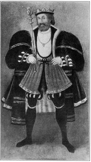 | The original of this picture, now lost, was painted by an artist when the tomb of the Conqueror was opened in 1522. A copy executed in 1708, is preserved in the sacristy of St Etienne’s Church at Caen; the present illustration is from a photograph of that copy. | |||