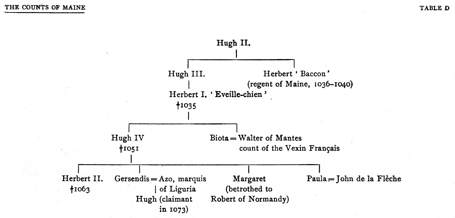 Easter, 1080: King William; Matilda the Queen; Robert, the king’s son; William, the king’s son; William, archbishop of Rouen; Richard, archbishop of Bourges; Warmund, archbishop of Vienne; Geoffrey, bishop of Coutances; Gilbert, bishop of Lisieux; Count Robert, the king’s brother; Count Roger of Eu, Count Guy of Ponthieu, Roger de Beaumont, Robert and Henry, his sons, Roger de Montgomery, Walter Giffard, William d’ Arques.—Calendar of Documents Preserved in France, ed. J. H. Round, No. 78.