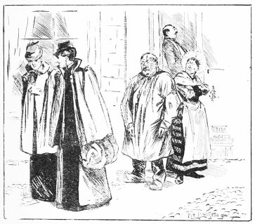 There is on the south side of the Seine, not far from the Gare Montparnasse, a hotel beloved of art students. It is clean and cheap, and is bounded on all sides by the tram lines that cleave Paris through and through, and put the whole town in the hollow of one’s hand for six sous (avec correspondance). The Quartier Latin looked as fresh and clean and respectable on this October morning as if it had not a world-wide reputation for opposite qualities, and as{229} mademoiselle of the hotel rushed out and greeted us in such strange English as is learnt from American art students, and with the effusion that is reserved by her for old friends, a serene assurance settled down upon us that here, at least, our appearance, manners, and accents would excite no surprise. We had our luncheon at a crêmerie, a place known of yore, where a beefsteak (saignant, according to French custom, unless specially forbidden), confiture, a saucerful of curd known as fromage à la crême, and a cup of black coffee could be obtained in sufficient cleanliness for a franc or less. It was rather too early in the season for the art student to be in full bloom; the two hot little rooms that were so like the cabins of an inferior steamer were almost empty, instead of being stuffed to their utmost capacity and resounding with as many languages as the Tower of Babel, and when we went on to the studio, and, with pleasurable anticipation, climbed the long staircase and knocked at the door, no voice responded. There was no one there. The easels were heaped up in one corner, the{230} stools in another, the clock had stopped, the model stand was covered with dust, and desponding sketches of undressed deformities dangled from the walls, each by a single drawing-pin. Angelo, the hoary and picturesque attendant, followed us into this desolation, and said that such monde as there was, with a contemptuous shrug, was là-bas. A glance into the lower studio, where half-a-dozen unknown Englishwomen were fighting over the position of a sulky model in the dress of a cardinal, was enough for us. We felt that ‘superfluous lags the veteran on the stage.’