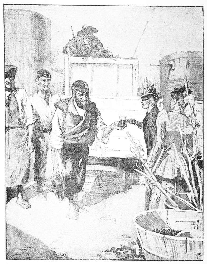 This direction was to the two grinning vendangeuses; and, in response, two large tongues, as purple-black as a parrot’s, were presented to us, while the eyes of their owners goggled above them with guilty deprecation and an inextinguishable sense of the absurdity of the situation. They had the full sympathy of the jury, and the judge only held up his hands and laughed too.