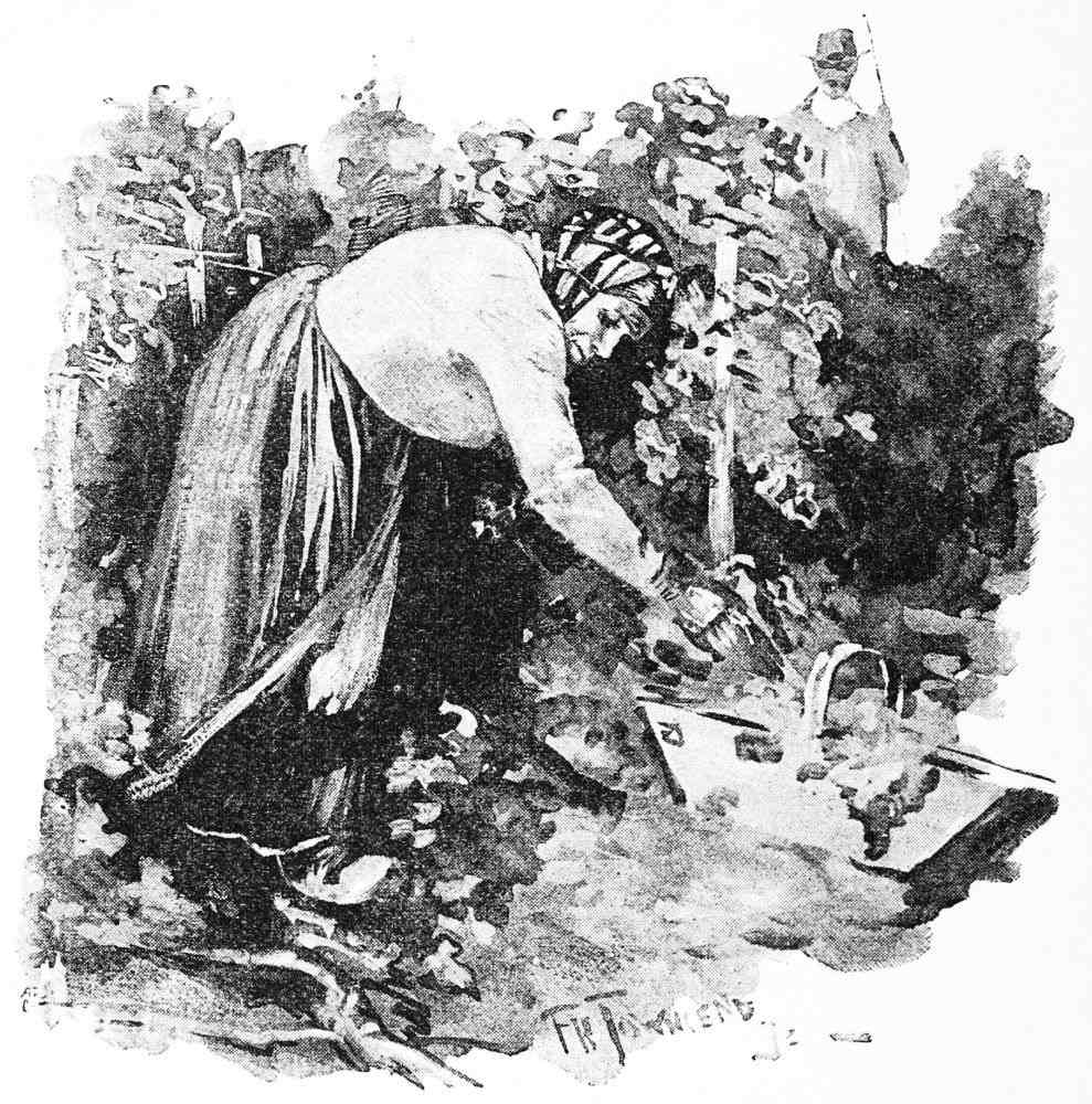 A chorus of horror arose. The pallid face and weak saucer eyes of the timid aunt appeared furtively round the straw rim of the chair, and she murmured, ‘Mees! Mees!’ in tones of faint reproof. (I had forgotten to say that as the dog was supposed to be{193} an English terrier, he was called ‘Miss,’ a generic term in France for the British dog, irrespective of size or sex.) Madame de Q. and the spotty cousin offered polite condolences; Monsieur de Q. aimed some opprobrious epithets at the offender instead of the kick that he so richly deserved; and Mdlle. Hortense in an instant whirled me out of my chair, through the drawing-room, and into a bedroom, there to take off my own skirt and endue one of hers, while mine was sent to the kitchen to be washed and dried. It took a fair amount of philosophic calm to walk back to the verandah in a full white calico skirt some four inches too short for me, and it was a relief to find that a number of fresh visitors had arrived, and that my entrance was consequently unobserved. Almost immediately afterwards, it was suggested that we should be taken to see the park, and I crouched down the verandah behind the crowd, trying to decrease my height by those uncompromising four inches, and painfully conscious that all the gentlemen of the party had remained behind,{194} and were watching our exit with some interest. ‘Now ces messieurs are content,’ said Mdlle. Rosalie, dropping behind to talk to me. ‘They will be able to talk of nothing but the vintage till we return—ça m’agace!’