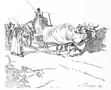It was already late in the day, and sunset and its signal to leave off work came soon. The crowd flocked out of the vines—men, women, and children, talking and laughing with unexhausted zest, and grouping themselves in the sandy cart-track in unerring harmonies of blue and white and grey, flecked here and there with the flash of a red kerchief or cap. The movement towards home gradually assumed the aspect of a religious procession. Headed by the{207} sacrificial oxen and their load of grapes, it passed slowly through the vineyards in the dewy spell of the evening, till, as it moved distantly up the slopes and breasted the afterglow, it seemed that a Samian glade and a temple to Ceres must be its destination. It was the last of the vintage, and the first feeling of coming farewell touched us while we came back among the stripped vines; the metallic whirr of the cigales and the loud interjections of the bullfrogs were the only voices left to replace the shrill babble that had penetrated every square yard of the green landscape. A suspicion of frost was in the air, touching the tender evening like a spur, to remind it of the tyranny that was to come, when the vines would shrink to brown skeletons, and the winter day would darken above them to its setting, in the chilly silence of the snow.