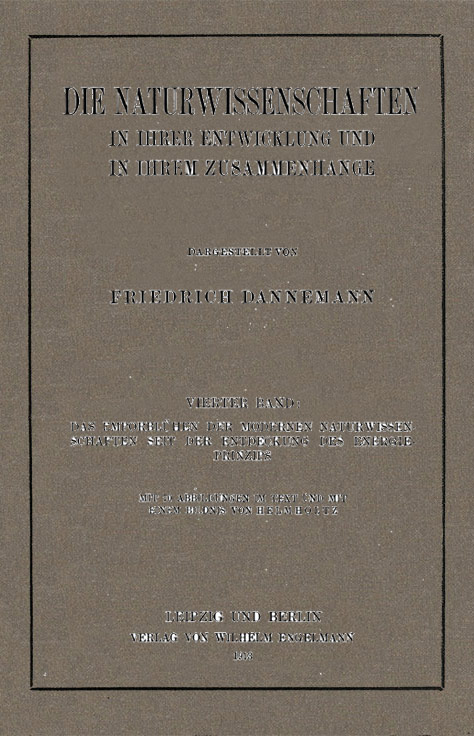 Mit dem vorliegenden, vierten Bande kommt das Unternehmen, die Naturwissenschaften in ihrer Entwicklung und in ihrem Zusammenhange darzustellen, zum Abschluß. Der erste Band führte von den Anfängen bis zum Wiederaufleben der Wissenschaften, der zweite von Galilei bis etwa zur Mitte des 18. Jahrhunderts. Zwischen dem 3. und dem jetzt erscheinenden 4. Bande ließ sich keine scharfe chronologische Schranke ziehen. Beide Bände schildern in der Hauptsache das Emporblühen der modernen Naturwissenschaften, das mit der Wende vom 18. zum 19. Jahrhundert anhebt. Einen gewissen Abschnitt bildet die Aufstellung des Energieprinzips. Die Entdeckung dieses, die moderne Wissenschaft beherrschenden Prinzips war aber keine unvermittelte. Sie wurde durch das Auffinden zahlreicher Tatsachen und Beziehungen allmählich vorbereitet. Infolgedessen tritt das neue Prinzip in den ersten Abschnitten des vierten Bandes erst nach und nach immer deutlicher in die Erscheinung, bis es gegen die Mitte des 19. Jahrhunderts zu einem klaren Ausdruck und seitdem zur bewußten Ausdehnung auf sämtliche Naturwissenschaften gelangt. Gleichzeitig erfolgt auf dem Gebiete der organischen Wissenschaften das Emporkeimen des Entwicklungsgedankens. Wir stehen noch heute inmitten des Ringens, das an der Hand dieser umfassenden, dem 19. Jahrhundert sein Gepräge verleihenden Prinzipien zu immer größerer Klarheit führen wird. Es mußte daher das Ziel des letzten Bandes sein, den Wegen nachzugehen, die von dem älteren, gesicherten Bestande zu den Problemen des Tages hinüberführen. Als Marksteine auf diesen Wegen begegnen uns die Originalarbeiten der großen Forscher. Diese Arbeiten sind durch Ostwalds umfangreiches Unternehmen der »Klassiker der exakten Wissenschaften« weiteren Kreisen zugänglicher geworden. Der Aufgabe, für dieses Unternehmen gewissermaßen einen Rahmen zu schaffen, ist sich der Verfasser auch in dem vorliegenden Bande stets bewußt geblieben.