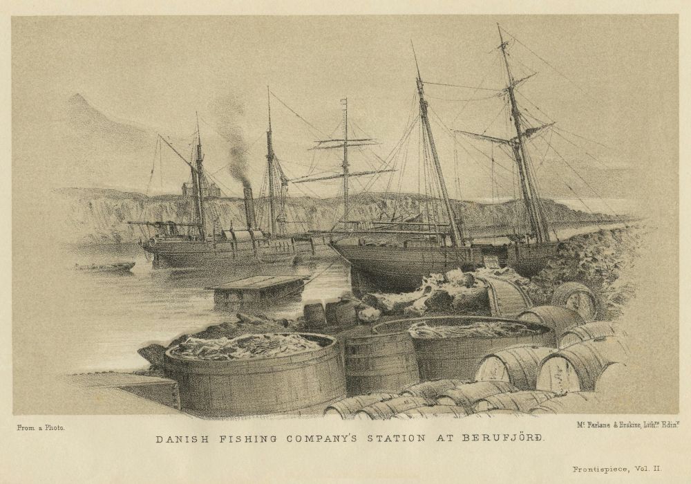 When consulted about the Vatnajökullsvegr, Professor Gunnlaugsson strongly advised me to avoid it, as the animals would be exhausted before the real work of exploration began. The easiest attack upon the great glacier, he said, was from the north, especially when the polar winds were blowing, and thus travellers might penetrate to the centre without encountering the difficulties of the Klofajökull to the south. Altogether he was in favour of Berufjörð, the starting point. As the Danish steamer is bound, weather permitting, to touch at that port, I had thought when in England of making it my base; unhappily, the line was represented as too rugged for transit, in fact, impassable, whereas it is distinctly the reverse.