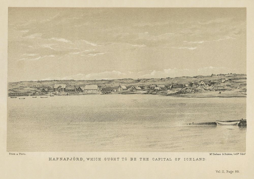The first newspaper printed in Iceland began in 1775: in the catalogue of writers prefixed to the work of Uno Von Troil, it is called the Isländische Zeitung. This Islendingur, not long defunct, gained considerable reputation; the back numbers are to be found at the College Library. At present the island publishes three periodicals, of which two are printed at the capital. The first, which appears regularly twice a month, is called the Thjóðólfr,[1] an old Icelandic Christian name; and in 1872 numbered its twenty-fourth year. The sheets vary from one to two, according to the amount of news; the columns are double, the page is about 10 inches by 8½; the subscribers’ list shows some 1100, and the yearly subscription is $1, 2m. 0sk. The editor, Hr Procurator Jón Guðmundsson, a barrister, conducts it worthily, and with great intelligence; he is outspoken, but not factiously so. The Tíminn (Times) appears once a month; its politics are of the “Hlut-lausir,” lot-less, or neutral tint, which would have caused it to be ostracised at Athens; and there is some mystery{2} about the editor, who is usually supposed to be Hr Páll Eyúlfsson, silversmith and cicerone. The third is the Norðanfari (Northern Traveller) of Akureyri,[2] the chief commercial station in the north. It usually comes out some twenty-six times a year in the full size of four pages, and at intervals with reduced proportions: matter is fearfully scarce during the four winter months, when there are no mails, and local subjects must be at a premium. As regards the sparring of rival journalists, it is, to quote Arlequin’s saying, “tout comme chez nous.”