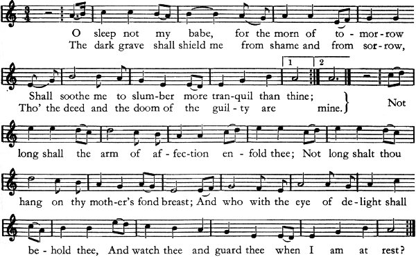 This song is attributed to Henry F. Chandler and dated 1854. ‘The Irish Girl’, as sung in Virginia, shows a similar rhythmic trend but is less closely related tonally. See Sharp, ii., 254. Greater melodic resemblance is seen in ‘Our Goodman’ Sharp, i., 269, tune “D”.